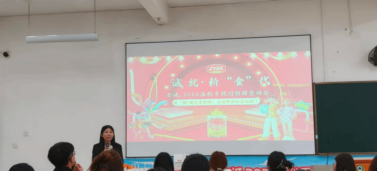 紧接着,全方位介绍企业发展历程、行业地位、核心业务及企业文化。作为集研发、生产、销售于一体的大型食品企业,力诚食品有限公司深耕行业多年,旗下多款产品畅销全国,其完善的人才培养体系、人性化的管理模式让在场学子对企业有了更直观的认知,迅速拉近了与学生的距离。