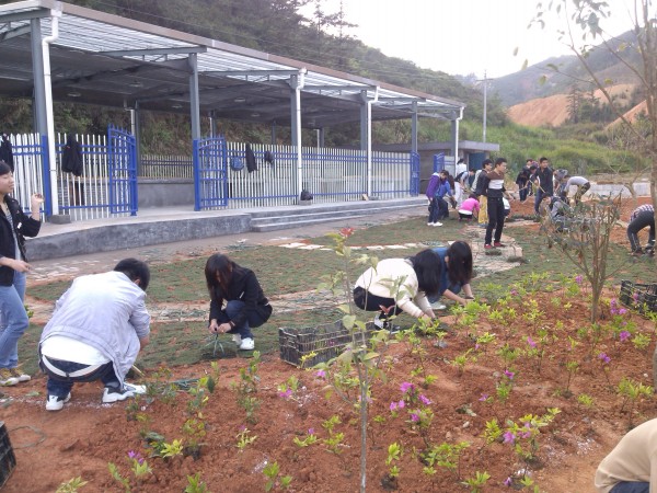 2013年3月18日,资源环境系林业专业,园林专业的师生在系主任的带领下,对实景园的土地进行了园林绿化,老师们拿着工具进行现场示范教学。之后按照要求开始铺设草坪、种植树苗,干的热火朝天。