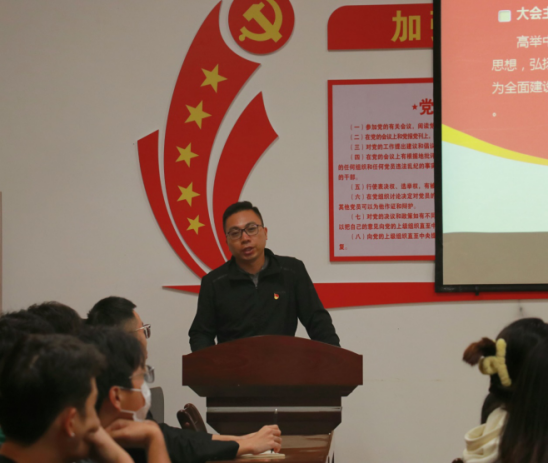 徐洪书记为参加的师生党员详细介绍了党的二十大报告主要内容,突出介绍了报告中的新观点、新论断、新要求,重点讲述了“335”内容,即“三个务必”、“三件大事”、“五个必由之路”,深入浅出地将党的二十大精神和师生日常生活工作实际结合起来。徐书记指出:要把学习宣传贯彻党的二十大精神作为当前和今后一个时期全系师生党员的首要政治任务,把学习党的二十大精神和系部系情相结合,把全员全覆盖主题培训与各级各类常态化培训结合起来,把领导干部带头学与党员干部自觉学结合起来,做到学思用贯通、知信行合一。
