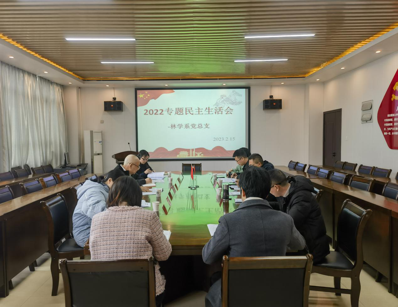 第一项议程,徐洪同志代表林学系领导班子通报2022年度领导班子民主生活会的准备情况,党总支广泛征求系部教师意见,发放《党员领导干部民主生活会征求意见表》,着重听取了系部教师对于系部领导班子成员的意见和建议,切实做到了“照镜子、正衣冠、洗洗澡、治治病”的要求,为会上开展批评与自我批评打好基础。