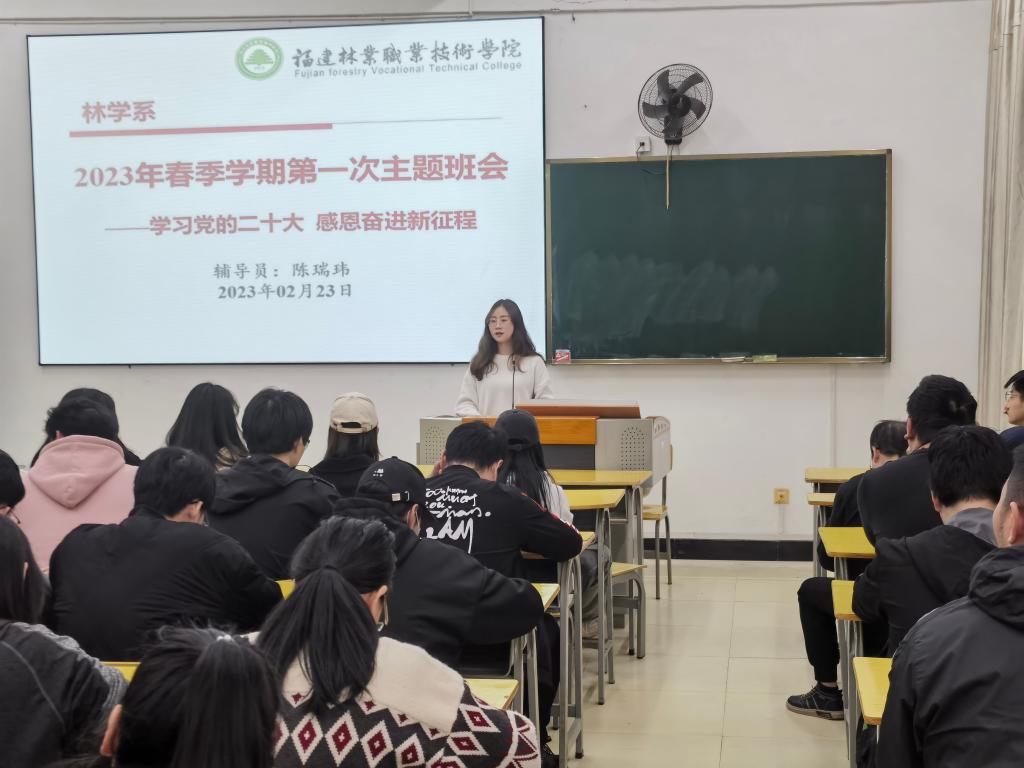 为深入学习宣传贯彻党的二十大精神,做好新学期学生管理工作,林学系学工组各辅导员在2月20日-2月26日开展了内容丰富、形式多样的教育活动,用心、用情开好开学第一次主题班会,激励广大同学坚定理想信念、涵养家国情怀、砥砺奋斗精神,以饱满的精神、奋进的姿态迈进新学期,起好步、开好局。