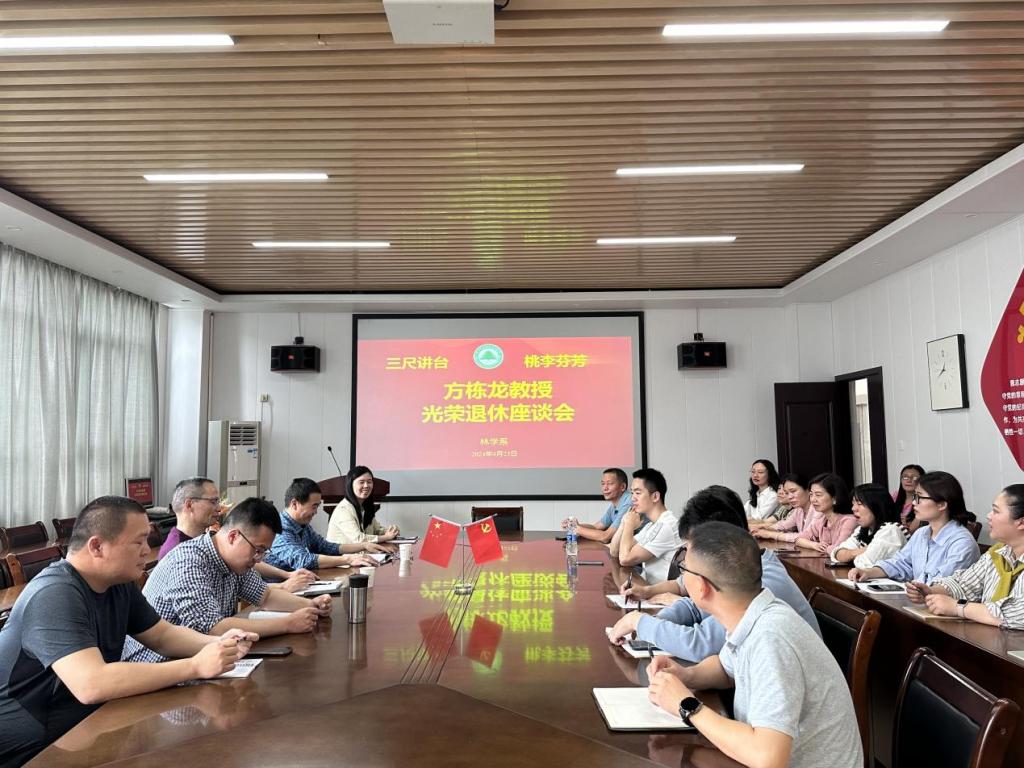 4月23日下午,林学系召开方栋龙教授光荣退休座谈会。会议由林学系党总支书记傅成杰主持,林业教研室全体教师参加。