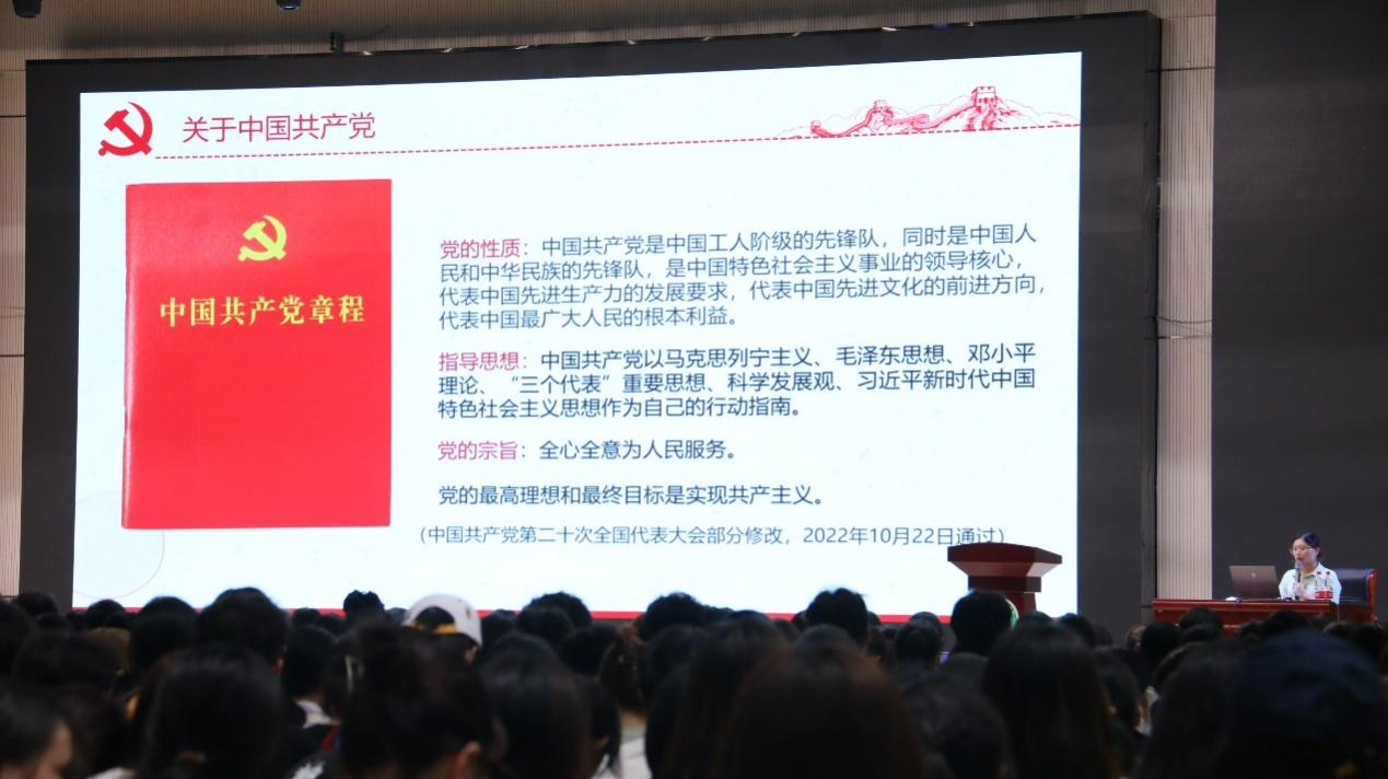樊寿娜老师以“让青春与信仰同行”为题,为新生们介绍了中国共产党的性质、宗旨、最高理想和最终目标。带领大家回顾了党的光辉历程和伟大成就,激发了新生们对党的热爱之情和向往之心。随后,樊寿娜老师详细介绍了申请入党的条件和程序,并鼓励新生们积极向党组织靠拢。最后,樊寿娜老师强调,成为一名共产党员不仅是一种荣誉,更是一种责任和使命,需要大家在学习和生活中不断锤炼自己的品格和能力。