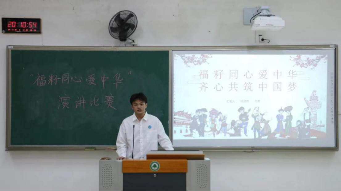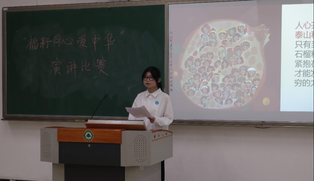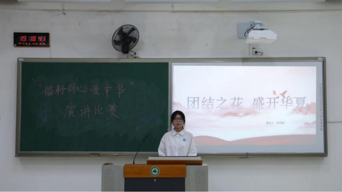 比赛现场,选手们紧紧围绕“福籽同心爱中华”这条主线,以“宣讲+ppt ”的形式,用生动的语言、鲜活的事例、真挚的情感以及声情并茂的演讲让同学们能够深刻感受到民族团结的强大力量,让同学们深刻认识到铸牢中华民族共同体意识的重要性。只有各民族像石榴籽一样紧紧抱在一起,心往一处想、劲往一处使,才能汇聚起实现中华民族伟大复兴的磅礴力量。