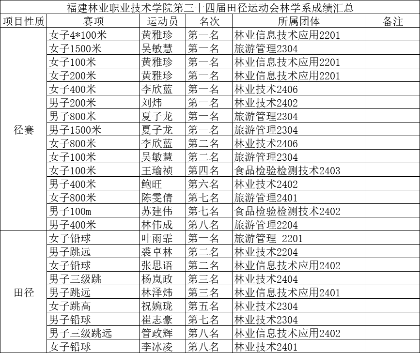 此次运动会中林学系的运动健儿们获得了优异的成绩,喜报如下:
