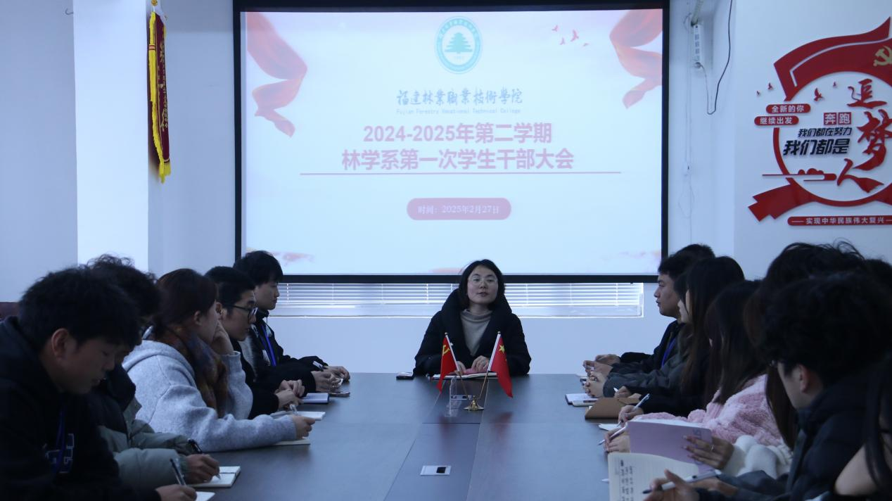 为进一步强化学生干部的全局观念、奉献精神与职责担当,提高学生干部的整体素质,林学系于2025年2月27日,在林学系“一站式”学生社区的党团共建中心,召开了2024-2025学年第二学期第一次学生干部工作会议。林学系学生科科长兼团总支书记马艳红老师主持此次会议。林学系两委会学生干部参加本次工作会议。