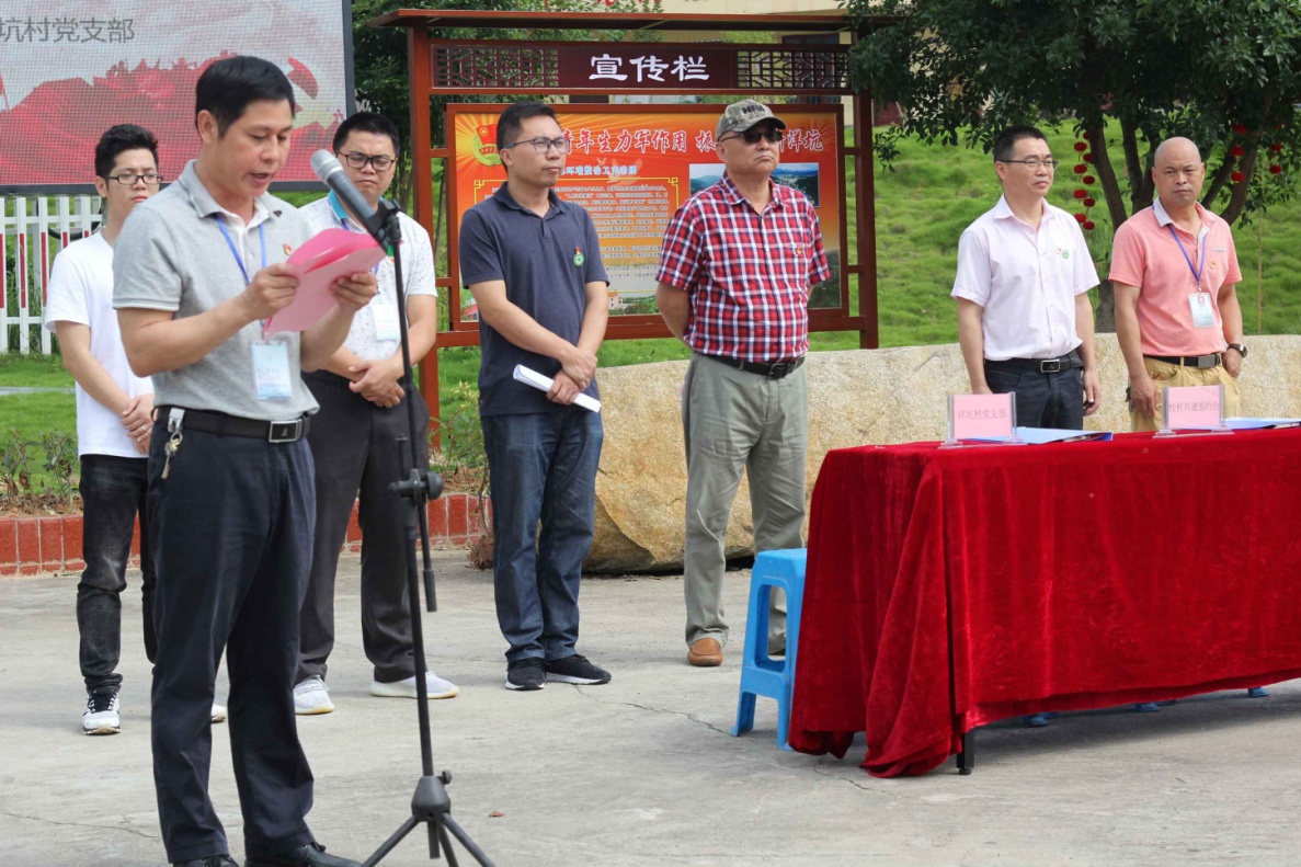 2019年5月24日,主持人傅汉强介绍出席来宾:林职院党委书记万泉、林学系主任廖建国、林学系党总支副书记徐洪、夏道镇人大主席陈家官、夏道镇组织委员陈培西、洋坑村党支部书记林芊盛、林学系学生第一党支部书记罗勇、各教师党员、学生党员以及洋坑村村两委。