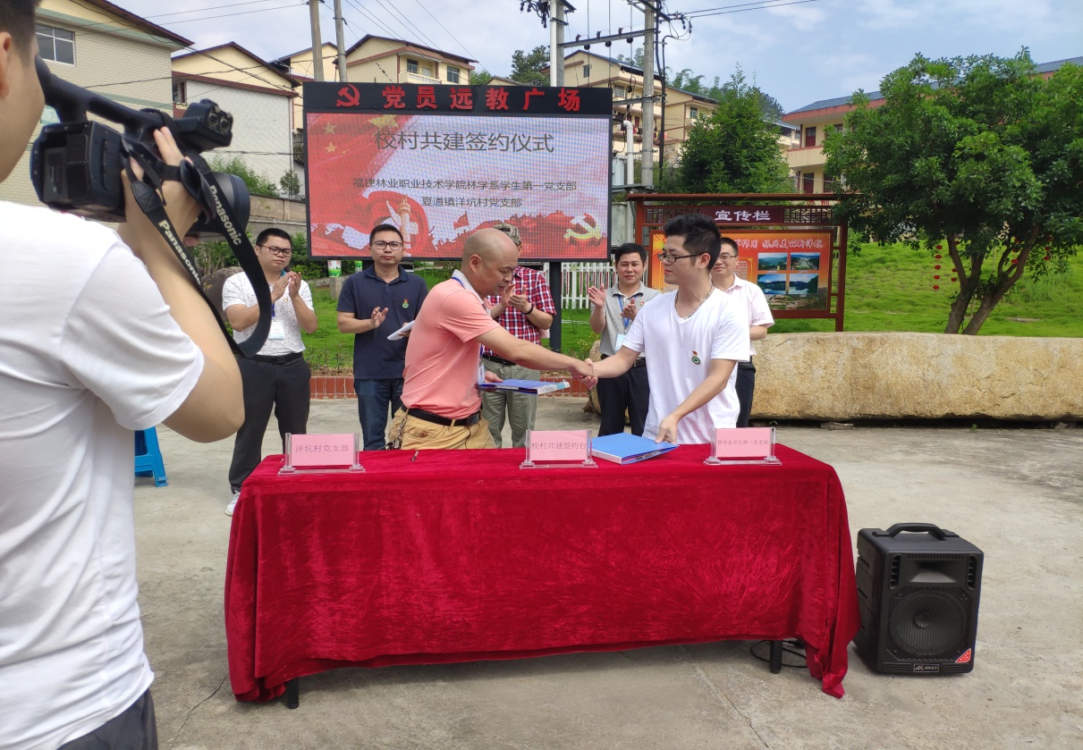 此次,洋坑村党支部与林职院林学系学生第一党支部进行校村党员教育共建,搭建校村学、做互补的平台,对洋坑村的党员干部队伍教育管理事业发展极其重要,这也是建设学习型社会的细胞工程,是探索推进构建党员干部终身教育体系的切入点和基本载体,为全镇社会事业发展提供有力保障。今天的签约,意味着美好的开始,也意味着我们双方将会更加密切、更加实际的合作,同时不断的积累经验,使得我们互利共赢、共同发展。古语云“儒有合志同方”,共同的志向让我们携手创造未来,也会让我们共享完美未来。