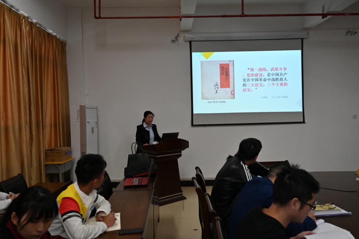 11月19日下午,思政部杜彩银副教授以“中国革命胜利的三大法宝”为题,为林学系党总支师生党员上党课。