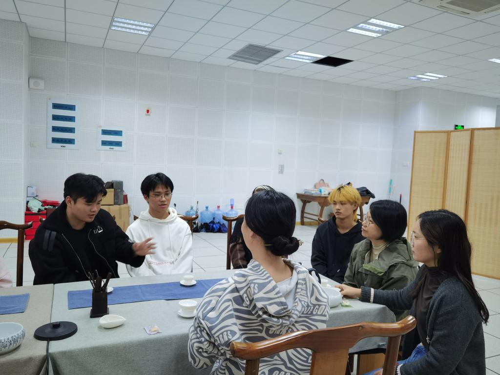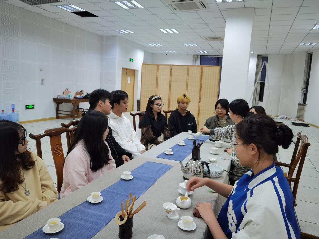 雪花酥的制作完成后,大家一同来到茶艺实训室进行茶艺的观赏 和学习。吴慧敏老师向大家详细介绍了茶叶的分类、泡茶三要素、茶叶的冲泡流程等茶文化基本知识,展示各种茶器的使用方法。大家在识茶、泡茶、品茶的过程中学习了高雅时尚的品茶技艺,感悟到博大精深的中华茶文化,体会了悠然闲暇的校园时光。