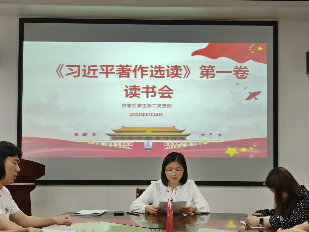 为深入开展学习贯彻习近平新时代中国特色社会主义思想主题教育,5月16日上午,林学系学生第二党支部在林学楼四楼会议室开展《习近平著作选读》第一卷读书分享会。本次读书会由林学系学生第二党支部书记樊寿娜主持,支部全体师生党员及部分入党积极分子参加了此次学习。