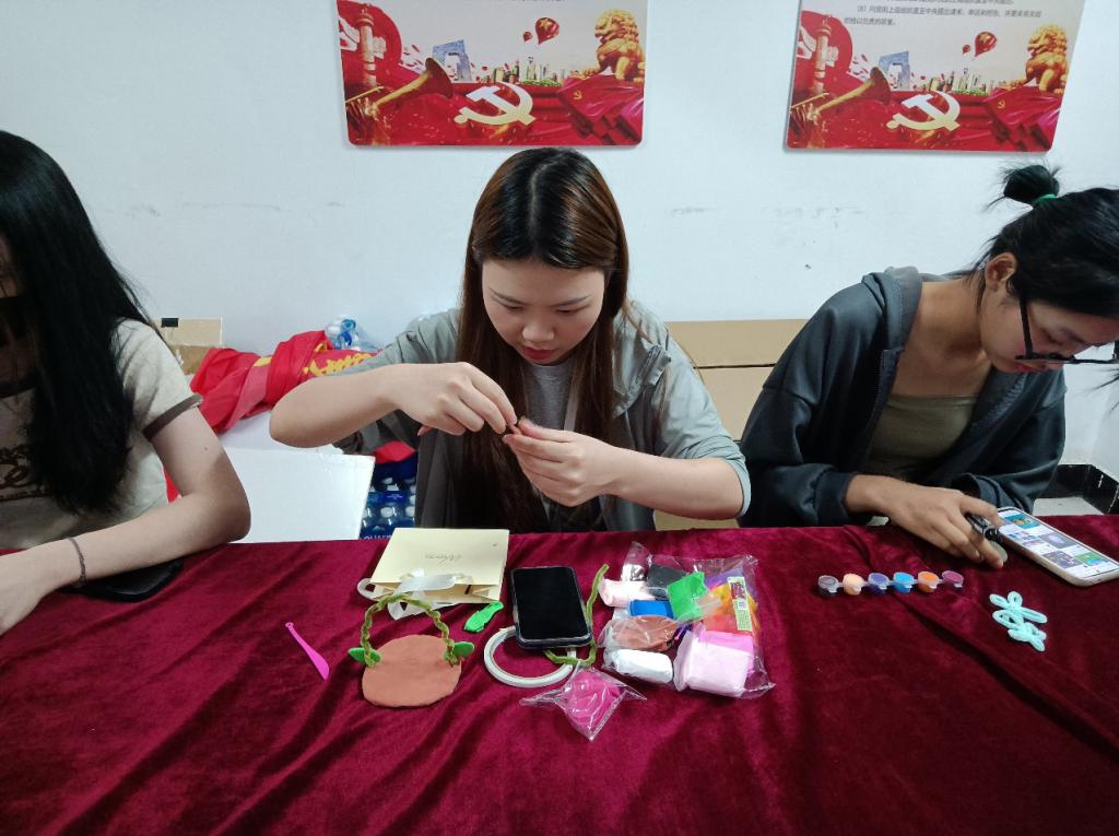 此次活动旨在通过手工制作帮助同学们舒缓心情,缓解学习、生活压力,促进同学们身心健康发展。此次手工制作主要是废物利用,利用生活中的废品制作成各式各样的精美作品。同学们在互帮互助中释放压力、收获快乐。创作完成后,大家将团队作品一一进行展示、相互赠送。看着精美的作品每个人脸上都洋溢着满足和喜悦的笑容。在团队合作中,教师党员们契合学生内在需要,帮助学生认识自我、完善自我,融入团队,享受大学生活,用小组活动凝聚关爱力量,引领学生心理健康成长。