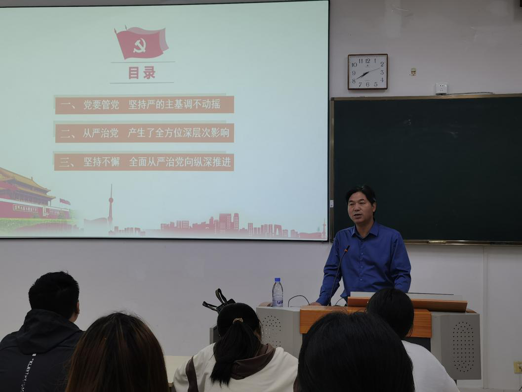 5月24日晚,严绍裕副书记为林学系师生党员和所联系班级(林业技术2203班)作《新时代全面从严治党的伟大实践》党课,林学系党总支书记傅成杰、专职组织员罗勇、学生科长马艳红、全体专职辅导员及林业技术2203班全体学生出席学习活动,活动由系党总支书记傅成杰主持。