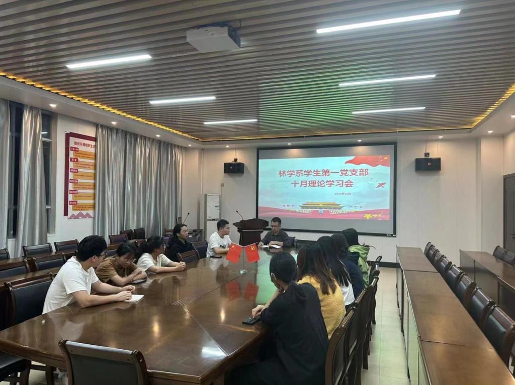 为学习贯彻习近平新时代中国特色社会主义思想,坚持不懈用习近平新时代中国特色社会主义思想凝心铸魂,用党的创新理论武装头脑、指导实践,巩固发展主题教育成果,林学系学生第一党支部于2023年10月24日在林学楼会议室开展十月理论学习会。