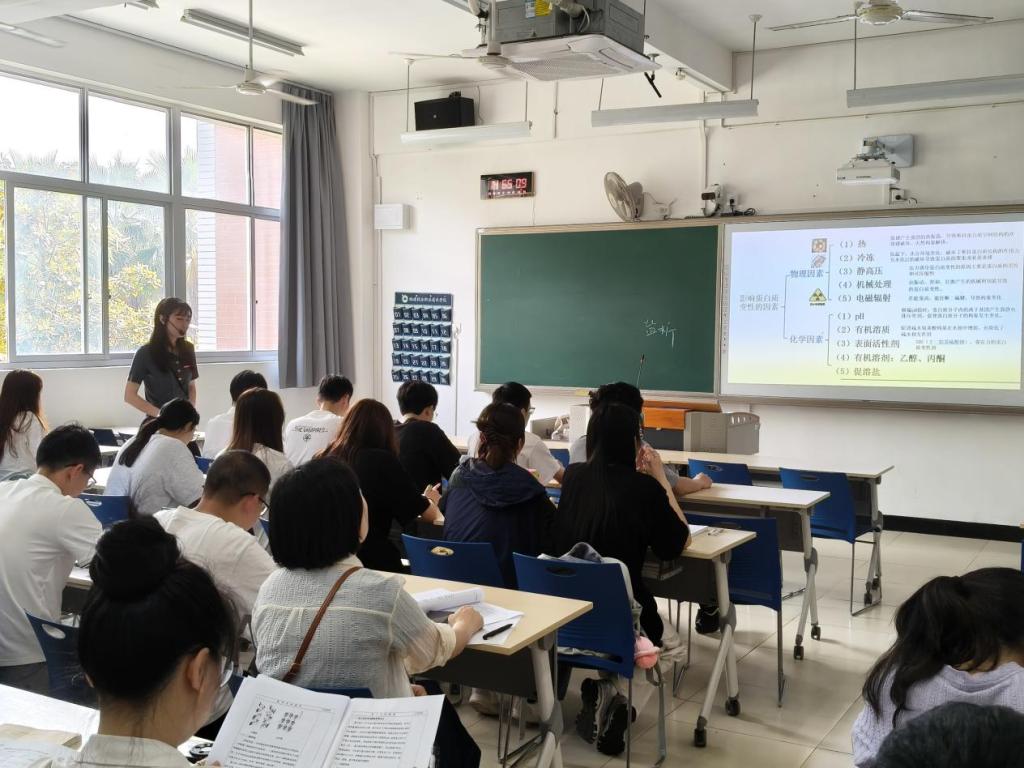 党员教师黄艺以“蛋白质性质”为主题,通过生活案例导入,引导学生运用蛋白质的结构和化学性质分析问题。课堂上,黄老师采用项目教学法,结合智慧课堂平台实时反馈学情,充分挖掘教育资源,精心选择教学内容,设计新颖别致的教学活动,同时巧妙创设教学情境,在项目设计、师生互动、任务驱动等过程中融入核心素养培养,处处体现将立德树人的根本任务抓在手上,将落实核心素养的教育理念扛在肩上,展现了党员教师扎实的专业素养和课程思政的有机融合。