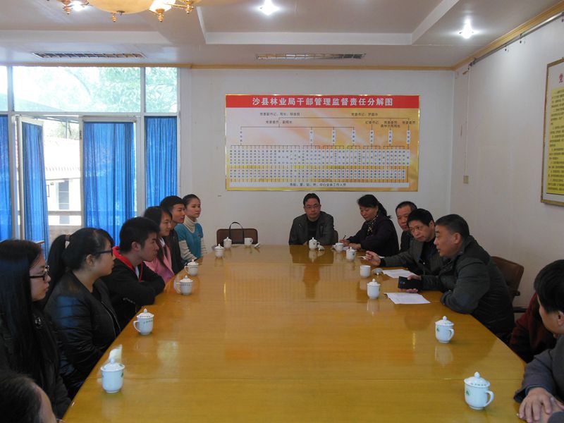 沙县林业局领导班子热情地接待了我院师生一行。在座谈会中,沙县林业局杨局长对毕业生的到来表示欢迎,鼓励毕业生在新的岗位认真学习,提升自身能力,争取考上事业单位编制或者公务员。沙县林业局人事教育科林科长对毕业生顶岗实习岗位进行了分配。