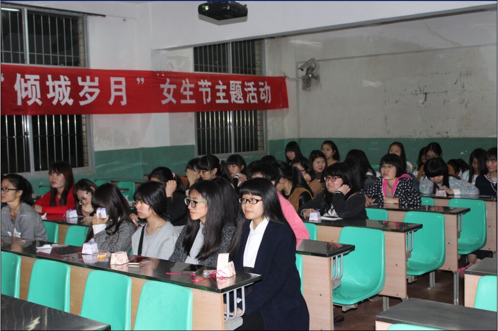 本次系列活动共包括三个方面:“智慧俏佳人”——有奖知识问答;“电影连连看”——“女性电影”展;“华丽的蜕变”——“女性妆容、礼仪”讲座。在“智慧俏佳人”——有奖知识问答活动中,天麟校区女生们各自发挥聪明才智,轻松赢取了丰富的节日小礼品,经济管理系女孩子们更是用行动向我们展现了她们集智慧与美貌于一身的美好形象;“电影连连看”——“女性电影”展在天麟校区阶梯教室顺利举办,优秀的影片吸引了经济管理系各个女生,在轻松的氛围中,大家既娱乐了心情,也从影片中获得了某些有益启示;“华丽的蜕变”——“女性妆容、礼仪”讲座于天麟校区礼堂门口火热进行,专业的妆容、礼仪老师耐心细致地为大家讲解了化妆的技巧及基本礼仪常识,专家丰富经验的传授和精彩的讲演令在场女孩子们欣喜不已!