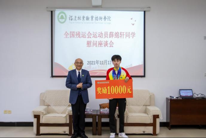 万书记向他提出期望,希望他下一步能把自己奋斗拼搏的故事提炼总结,在同学中讲好自己的故事,树立同学身边的榜样典型,充分展现自己的奋斗精神和国家的文明进步。同时能继续完成好学习任务,做到体育锻炼、专业学习两不误。最后万书记承诺学院新建成的游泳馆将永远对他免费敞开,为他创造集训条件,争取取得更大成绩,为学院、为家乡、为福建争光。