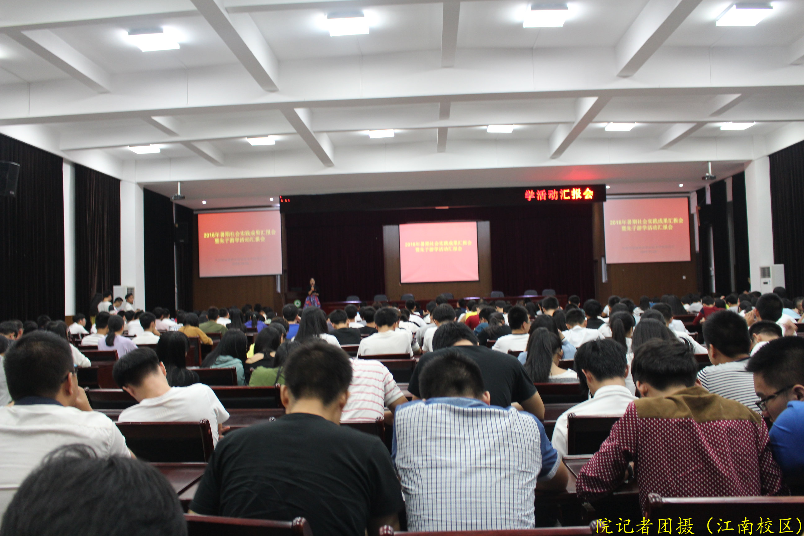 为展示社会实践成果,交流分享实践经验,引导和帮助广大青年学生在社会实践中受教育、长才干、作贡献,2016年10月20日晚上7点30分,院团委在江南校区礼堂隆重举行了2016年暑期社会实践成果汇报会暨朱子游学活动汇报会,团委副书记李霞老师、经济管理系学生科长陈友益老师、艺术设计系学生科长杨自绍老师、各系团总支负责人、各系小分队成员及各系观摩学生等约300人出席此次活动,会议有团委叶新颖老师主持。
