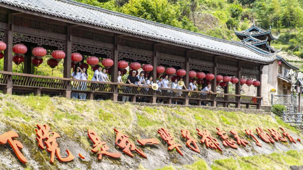 步行在下党乡村道上,前往调研的最后一站——鸾峰桥。青山如黛,山涧清澈,建于清代嘉庆年间的鸾峰桥飞架于两山之间,它不仅连接了地理的阻隔,更是习近平总书记与下党深厚情谊的见证者。据悉,习近平总书记第一次进下党,便是在鸾峰桥边上的简陋小学教室里召开现场办公会,午饭也是在鸾峰桥上吃的。古老的鸾峰桥,承载着时代重托,记载着“下党故事”,见证着下党的脱贫攻坚之路,彰显了下党乡民“滴水穿石、久久为功”的精神,引领具有闽东特色的乡村振兴之路接续前行。站在鸾峰桥上,实践队队员们仿佛能穿越时空,感受到习近平总书记当年在此用餐、休憩时的情景。这座古老的廊桥,不仅承载了岁月的沧桑,更见证了下党乡从贫困走向振兴的变迁