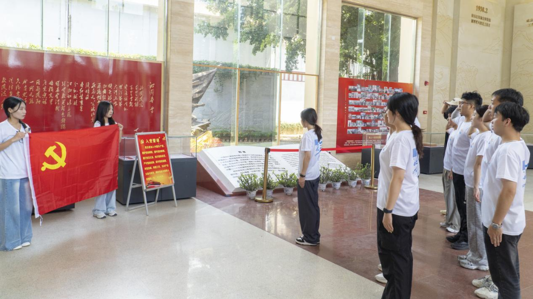 在馆长的谆谆教诲下,队员们也深刻认识到中国革命的胜利来之不易。“追寻”实践小分队全体队员面向鲜红的党旗重温入党誓词,用庄严的宣誓表达继承先烈遗志、坚定理想信念、对党绝对忠诚的决心。