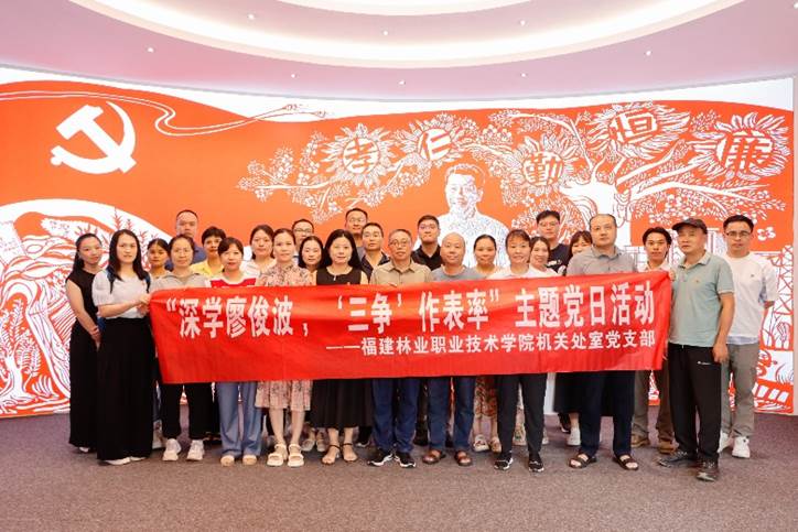 为进一步强化党员作风建设,将学习廖俊波同志先进事迹与深入贯彻中央八项规定精神学习教育紧密结合,6月22日,学院党政办公室党支部、组织部(统战部)党支部、宣传部党支部、纪委办公室党支部、人事处(教师工作部)和工会联合党支部、计划财务处党支部、现代教育技术中心和实训中心和科研与交流合作处联合党支部等7个机关处室党支部前往浦城县廖俊波家风家教展示馆,联合开展“深学廖俊波 ‘三争’做表率”主题党日活动。