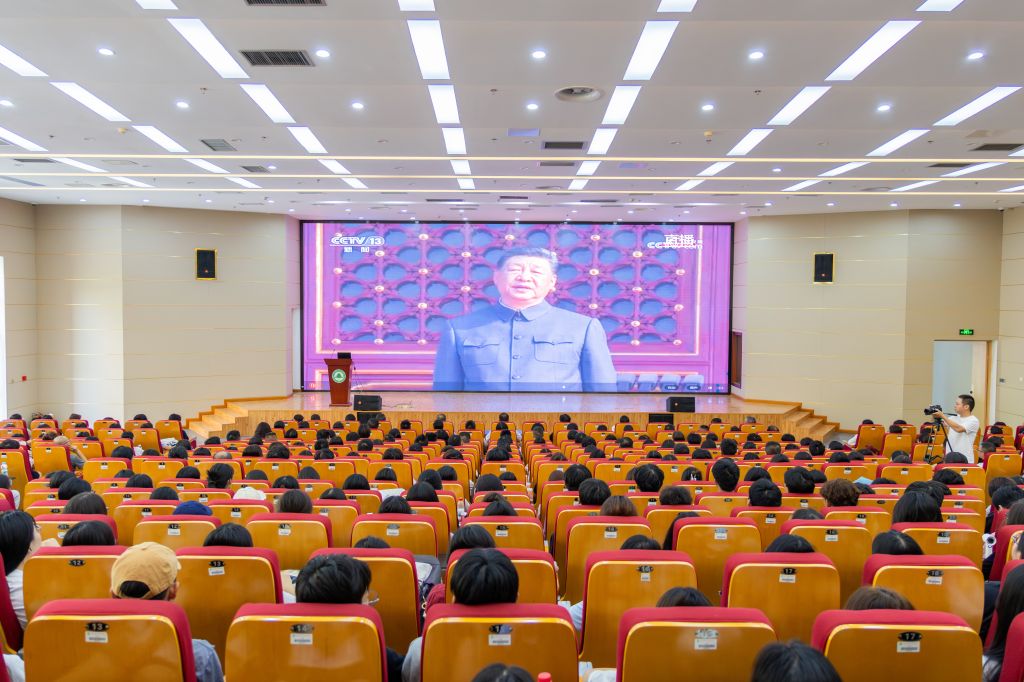 为铭记历史、缅怀先烈,弘扬伟大爱国主义精神、伟大抗战精神,现代教育技术中心和实训中心和科研与交流合作处联合支部全体党员在图书馆报告厅集体观看活动直播。