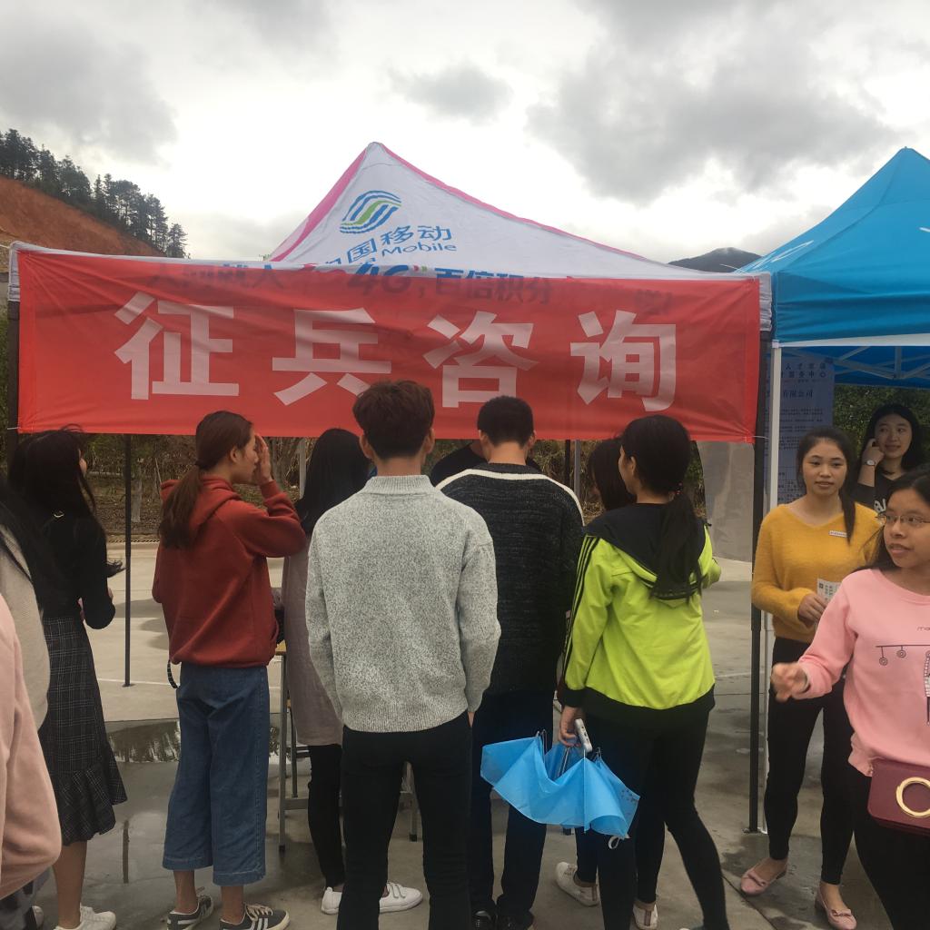 11月18日上午,我院在江南校区举办2018届毕业生校园招聘会,我院武装部联合夏道镇武装部将征兵展台搬到现场,开展征兵政策咨询活动,吸引不少毕业生驻足咨询,成为招聘会场一道别样的风景。