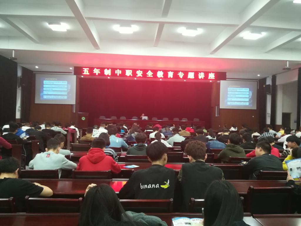 为了进一步普及安全知识,强化学生安全意识,加强安全教育,提高学生防患能力,3月29日晚,五年制中职部特邀夏道派出所的周剑斌警官在江南礼堂开展安全教育专题讲座。讲座由学生处李志锋老师主持,五年制中职部全体学生参加了本次讲座,参加讲座的还有保卫科黄智杰老师。