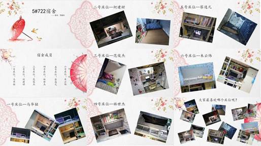 之后的每个宿舍更是不甘示弱,纷纷拿出看家本领,用PPT展示、演讲、自制视频、才艺表演、魔术等形式,充分展现各宿舍成员风采和百变宿舍内务整理。宿舍代表们自信逗趣的话语、宿舍成员之间温馨点滴的细节、宿舍布置的创意与门面打扫的整洁,吸引着全场同学的眼球,活动氛围活跃,掌声、笑声不绝于耳。
