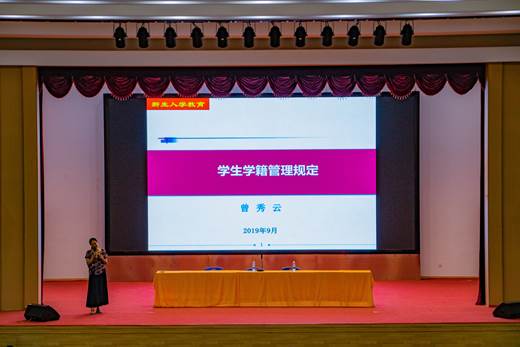 各系主任、教务科科长、优秀教师等结合往年案例,向学生详细讲解学生管理规定、学籍管理规定、转专业实施细则、考勤规定、考试违纪处理等管理制度,对学籍学业做了具体阐述,帮助新生尽快熟悉大学生活,对大学学习形成初步的了解。教育学生:大学三年时光看着长,实则短暂,希望新生充分利用大学三年养成良好习惯,学礼仪会做人,从细节要求自己,在大学期间勤学习,多实践,努力成长为有理想、有本领、有担当的时代新人。