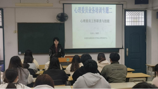 2022年11月—12月学生工作部心理老师陈慧、黄韵绣为心理委员开展专题系列培训,全院2022级新生班级心理委员参加。