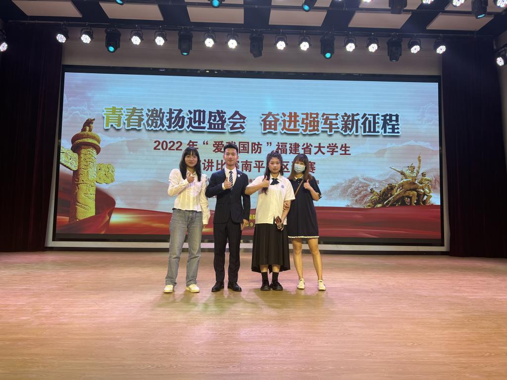 本次比赛由南平市委宣传部、市教育局、市退役军人事务局、南平军分区政治工作处、团市委共同举办,共有来自四所在南院校的八支队伍参赛。比赛现场,余俊威以《青春激扬迎盛会,奋进强军新征程》为题,结合实际例子,畅谈自己用实际行动追求强军报国梦想的心路历程,展现了新时代大学生坚定的理想信念与责任担当,受到现场评委和观众好评。彭雯鑫以《青春铸就国防梦》为题畅谈了对立志报国、筑梦国防的坚强意志和爱国热情。参赛选手演讲主题表达鲜明、语言流畅生动、内容饱含真情,全方位演绎了我院青年学子“小我融入大我青春告白祖国”的青春誓言。