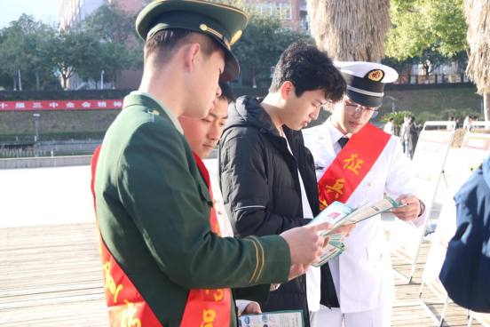 工作人员现场解答同学们篮球欧洲杯下注_欧洲杯投注网站下载-官网视力、外伤疤痕、下蹲、肘外翻等体检常见问题,耐心细致地向同学们介绍征兵入伍流程、体检政考、优抚优待等相关政策,现场对有参军入伍意向学生进行指导。学院学生工作部、安全保卫处老师及退役士兵代表通过发放征兵宣传手册、一对一解答,建立征兵咨询QQ群等形式,详细介绍了应征入伍的条件、登记方法、入伍流程,以及大学生入伍的优抚优待政策等。招生就处老师为学生重点介绍入伍学生相关就业创业扶持、复学升学、免试专升本等优待政策。