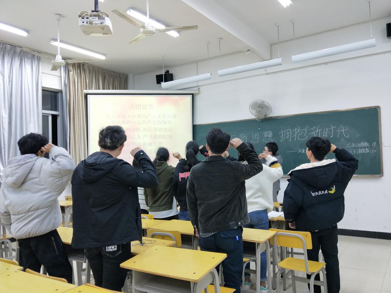会议一开始各班团支书就围绕贯彻落实《共青团中央篮球欧洲杯下注_欧洲杯投注网站下载-官网印发《中国共产主义青年团基层组织“三会两制一课”实施细则(试行)》的通知》的精神,牢牢把握习近平总书记新时代中国特色社会主义思想这条主线,聚焦“八个明确”的主要内容和“十四个坚持”的基本方略进行发言。会上不仅重温了中国共青团的入团誓词,还学习了党的十九大精神和新版学生管理规定,各团支部对此开展讨论,每位团员都发表了学习后的心得体会。随后,每位团员围绕本学期的收获、自身优势和不足做了自我评价并相互进行评议。最后,在中国共青团的团歌声中,此次组织生活会圆满结束。