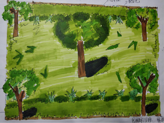 到达现场,志愿者们拿出各自所带的画图工具,即使天气十分炎热,大家还是耐心地为绿地进行设计,专注着手中的画。过程中,他们变换着不同的角度,尝试不同的视觉,相互讨论着,为同学解锁新的思路。一晃时间过得很快,大家都顺利按照自身的思路,对地块展开实质性的创新设计,随后大家一起拍照留念。