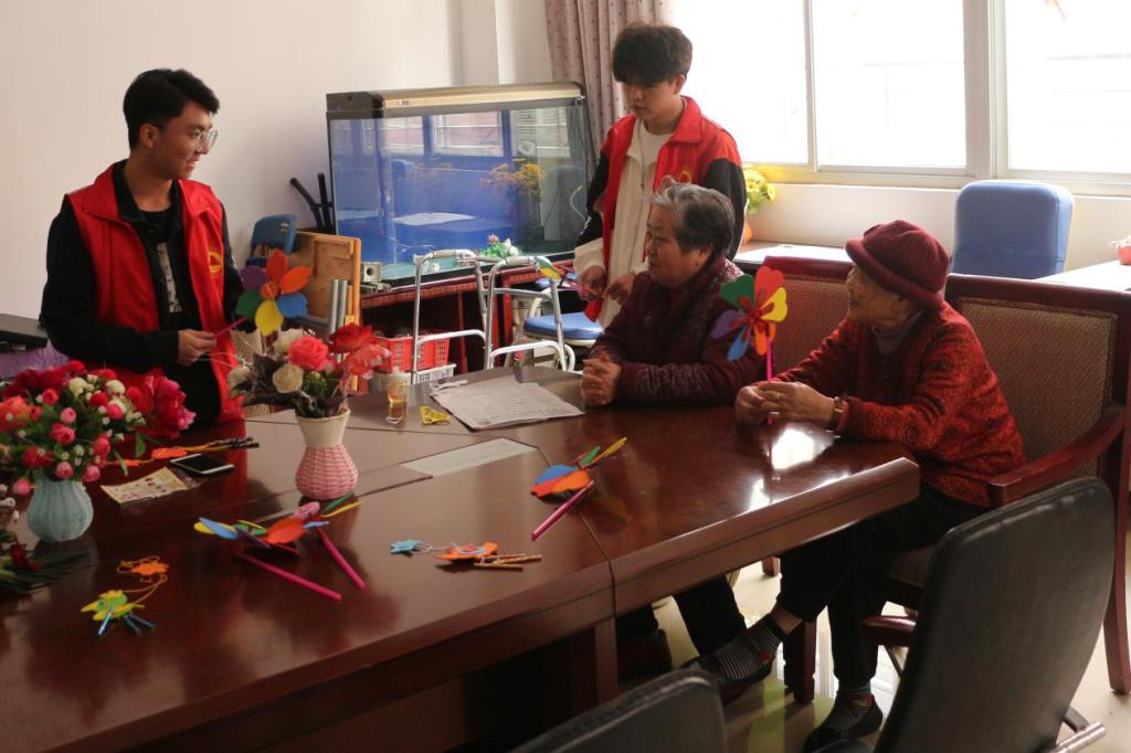 本次活动主要是陪老人下棋聊天、制作风铃风车等。在活动尚未开始时,老人们就产生了浓厚的兴趣,纷纷跃跃欲试,活动过程中老人们与志愿者互帮互助,对于不懂的地方,由志愿者耐心指导和鼓励,手把手教学,有细节上的问题老人之间也做到了相互交流,虽然老人年龄比较大,学起来比较吃力,眼睛不好使了、手也不灵便了,但他们对学习手工活的热情丝毫未减,老年人们还是很努力地把各种颜色进行了搭配拼接。志愿者们陪喜欢下棋的老人下棋,陪老人谈天说地,虽然有的同学棋艺不甚精湛,但是老人们仍然笑得很开心。短短一个下午的时间,志愿者们与老人建立了深厚的友谊,他们也把志愿者们当成了自己的孩子,与他们相处得十分愉快。