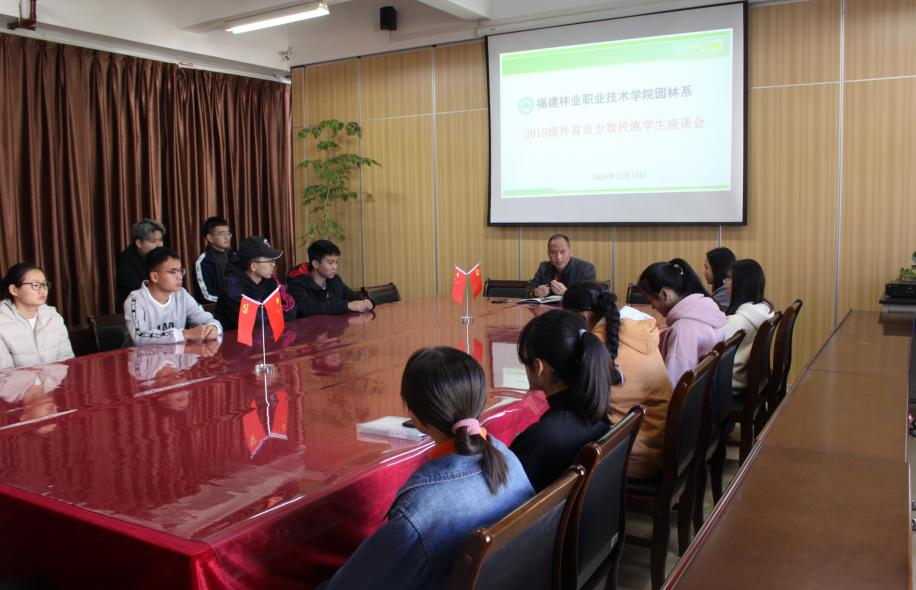 12月10日,园林系在系会议室召开2019级外省籍及少数民族学生座谈会。会议由园林系党总支副书记陈剑勇主持,园林系13位来自9个省、市、自治区的外省籍、少数民族学生代表参加了此次座谈会。
