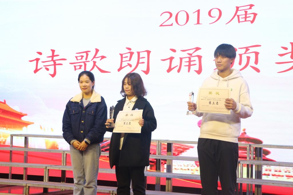 一篇慷慨激昂的《少年中国说》拉开了本次比赛的序幕。伴随着优美的韵律,参赛者朗诵着一篇又一篇经典佳作,用不同的风格和多样的形式展现自己的风采。《祖国啊!我们深爱着你》的朗诵者用饱满的声调和抑扬顿挫的朗读感染着全场观众,展现了当代青年的热情奔放和高度的历史责任感。从参赛者对《我和我的祖国》的朗诵中,我们听到了广大青年对祖国的无比热爱和无限期盼,台下的观众对祖国的热爱之情也油然而生。经过各班级精彩的演绎,最终园林技术1903班获得一等奖,风景园林设计1901班获得二等奖,风景园林设计1902班获得三等奖。
