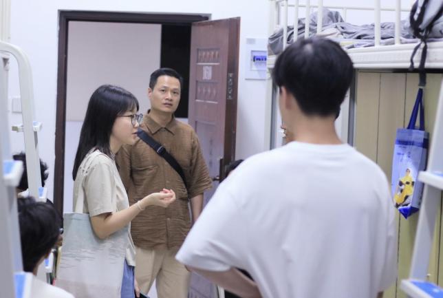 在走访过程中,老师们与新生们亲切交流。从询问同学们的家乡籍贯,到关心大家到校后的饮食是否习惯、对当地气候是否适应,再到倾听同学们对大学整体环境的初印象与感受,每一个话题都充满了对新生的关怀。同时,老师们还耐心倾听同学们的意见与建议,对同学们提出的疑问当场进行解答,无法即时解决的问题也认真记录下来,后续协调相关部门尽快处理。