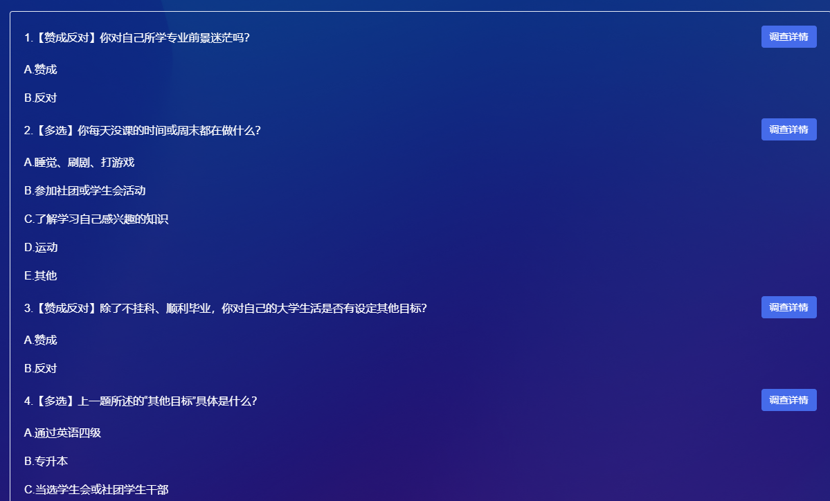 活动前期,甘露老师为确保指导更具针对性,精心设计并发放调查问卷,围绕“专业认知”“时间管理”“目标设定”三大核心维度展开调研,精准锚定新生“成长痛点”,为活动内容设计提供科学依据。
