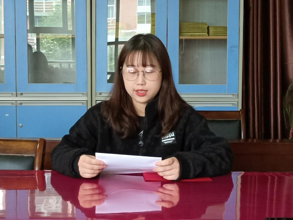 第三项内容是,曹婧同志分享自己的入党初心感言。曹婧同志说到:“作为一名党员,在接下来的工作中,我将继续以党员的标准和要求严格要求自己,并把党员的光荣传承下去。作为一名教育工作者,我将继续以立德树人为根本,始终注重对学生的思想政治教育,为党和国家培育合格的社会主义建设者和可靠接班人。”