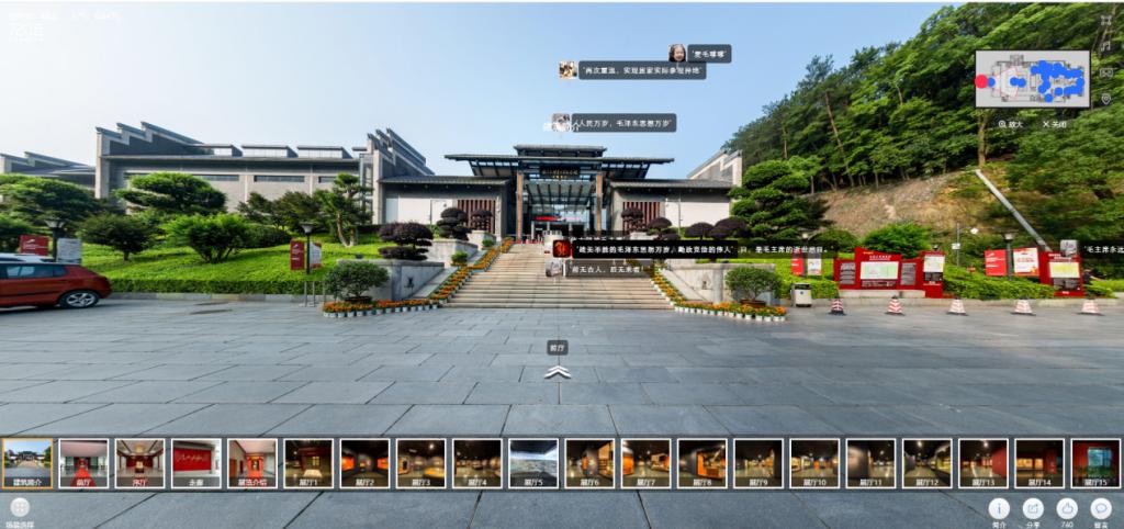 通过网上主题展馆可以收听观看《中国出了个毛泽东》虚拟展厅、《风范长存----毛主席遗物展》VR全景虚拟展厅等各类线上展览以及基本陈列(《风范长存----毛主席遗物展》、《中国出了个毛泽东》)、《英烈忠魂——毛主席一家六烈士》等专题陈列展览。虚拟展厅通过数字技术和虚拟现实技术构建,以沉浸式的方式生动地展示了毛泽东同志在中国革命和社会主义建设中的历史地位、丰功伟绩和崇高的人格风范。