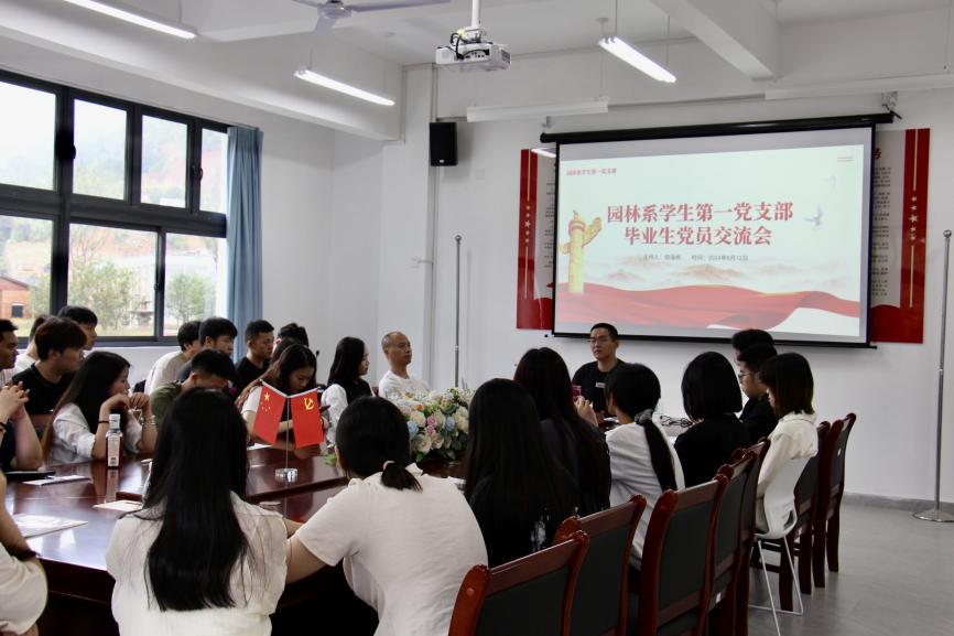 为深入学习贯彻习近平新时代中国特色社会主义思想,落实省委“深学争优、敢为争先、实干争效”行动部署,强化党员身份意识、宗旨意识和使命意识。2024年6月12日,园林系学生第一党支部组织开展毕业生党员“政治生日”主题党日活动暨毕业生交流会,为全体毕业生党员过“政治生日”,同时落实党员教育、管理和服务机制。此次活动由支部书记倪海奔主持,支部教师党员和学生党员参加了本次活动。
