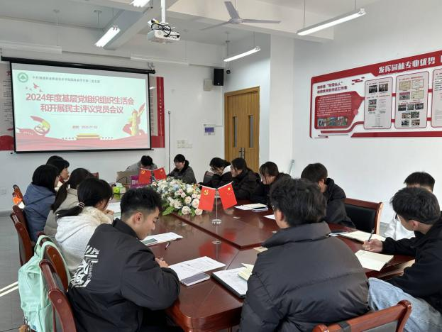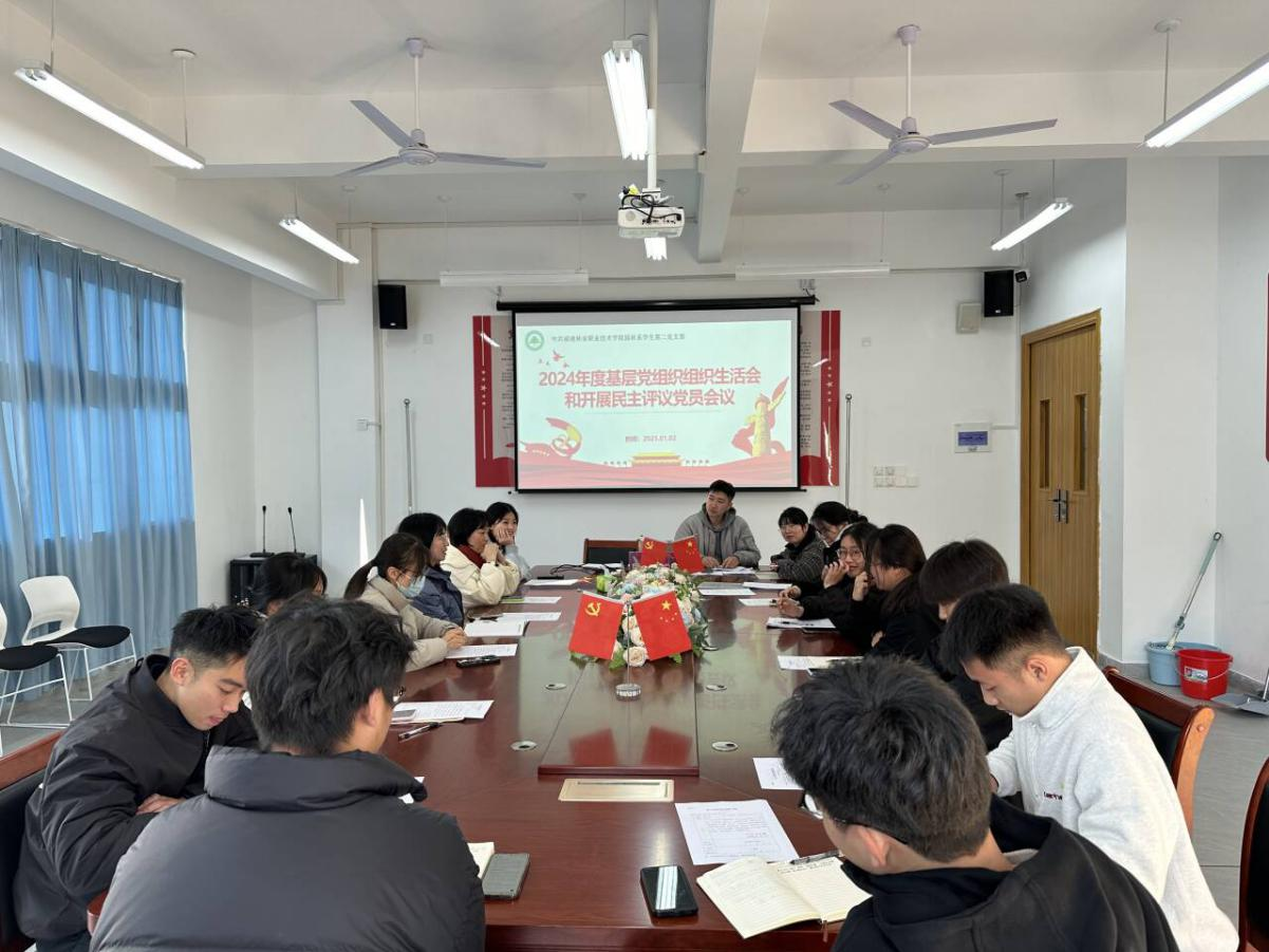 为深入学习贯彻习近平新时代中国特色社会主义思想,巩固深化党纪学习教育成果,综合发挥党的纪律教育约束、保障激励作用。2025年1月2日下午,园林系学生第二党支部在园林楼会议室召开2024年度基层党组织组织生活会和民主评议党员会议。本次会议由支部书记刘延君主持,支部全体师生党员参加会议。