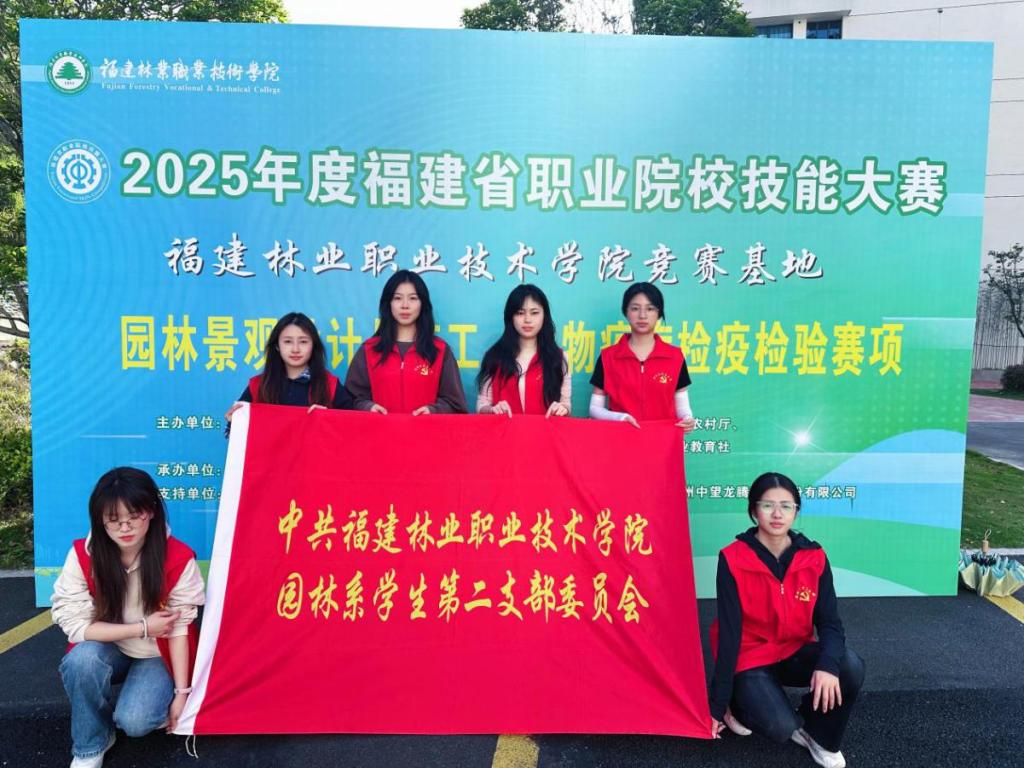2025年4月11日至14日,备受瞩目的2025年福建省职业院校技能大赛盛大召开,本次园林系所承办的赛项有“动物疫病检疫检验”、“花艺”和“园林景观设计与施工” 这三大项目。赛会期间,园林系学生第二党支部的师生党员以及积极分子们踊跃响应、全员出动,以饱满的热情和高度的责任感,全身心投入到志愿服务工作当中。他们忙碌的身影穿梭在赛场的各个角落,用实际行动诠释着奉献精神,充分展现了林职院莘莘学子朝气蓬勃、积极向上的精神风貌,为园林系省级技能赛项的有序开展和圆满成功筑牢了坚实基础。