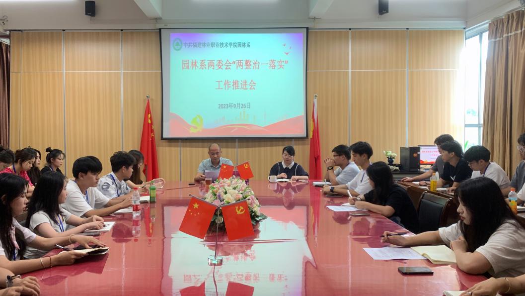 两委会作为园林系与学生之间的桥梁和纽带,在管理和服务中起着重要作用。为提高两委会工作的质量和效率,9月26日下午在林学楼3楼会议室,由园林系党总支书记陈剑勇、学生科科长兼团总支书记吴锦鸿为园林系两委会开展“两整治一落实”工作推进会。