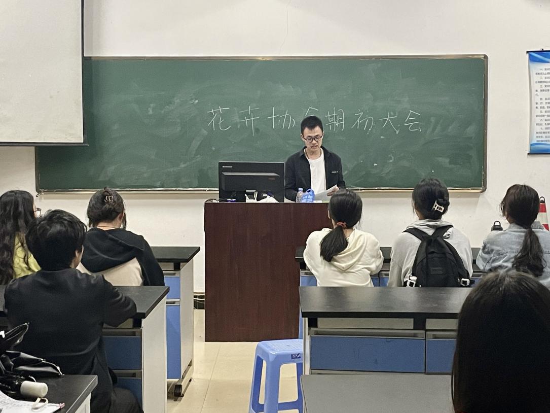 2023年10月8日晚上七点,园林系花卉协会于实训一105召开初期大会。本次大会由本届园林系花卉协会会长乔欣愉主持,特请指导老师郑建忠老师到场,园林系花卉协会全体会员参加。