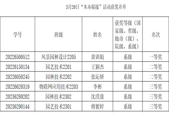 赛后,各位参赛选手纷纷表示,下一步要刻苦训练,深入钻研技术,提升嫁接技能,提高作品品质,提升专业水平能力。本次竞赛活动坚持“以赛选才”,调动了同学们比、学、赶、超的积极性,提升了嫁接技术应用水平,对发现培养乡土技能人才、促进园林专业学生素质能力提升,对将来推动乡村产业振兴具有重要的意义。张称称老师表示:“首先,我真心地向大家表示祝贺!在这次比赛中,你们不仅学到了嫁接的基本知识和技巧,还通过这次比赛明白自己欠缺、不足之处,同时也希望同学们能明白园林专业学什么、如何学,如何增强岗位适应能力和提高自己的动手操作能力,对于园林专业学生来说,创新能力培养至关重要的,在这个过程中,你们付出了辛勤的努力,勇于尝试新事物,超越自我并不断进步。最后,鼓励同学们以就业为向,以技能提高为目标,建立正确的价值观,有一定的承受能力、合作交往能力、工作能力、创新能力和学习能力,成为生产、管理以及服务第一线的具有综合素质的技术应用型人才。”