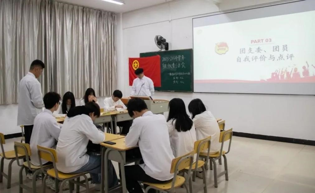 全体成员起立,齐唱团歌《光荣啊,中国共青团》。一朝入团,一心向党,在激昂澎湃的旋律中,组织生活会宣告正式开始。
